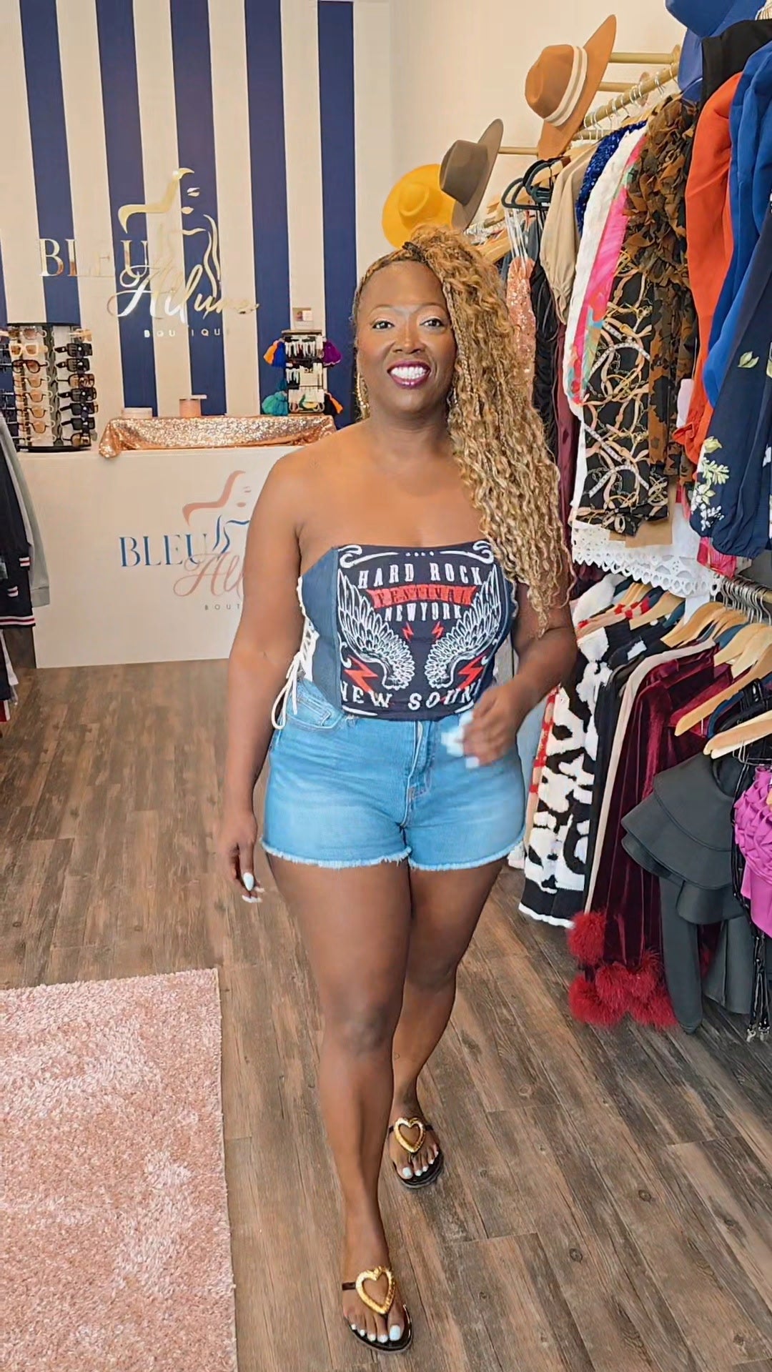 Turn heads in this bold denim-look halter top featuring edgy side lace-up details for a flirty, adjustable fit. Designed with a halter neckline and open back, this top hugs your curves while adding just the right touch of attitude. Pair it with matching denim bottoms or contrast it with leather for a standout look that’s perfect for summer nights, festivals, or girls’ night out.